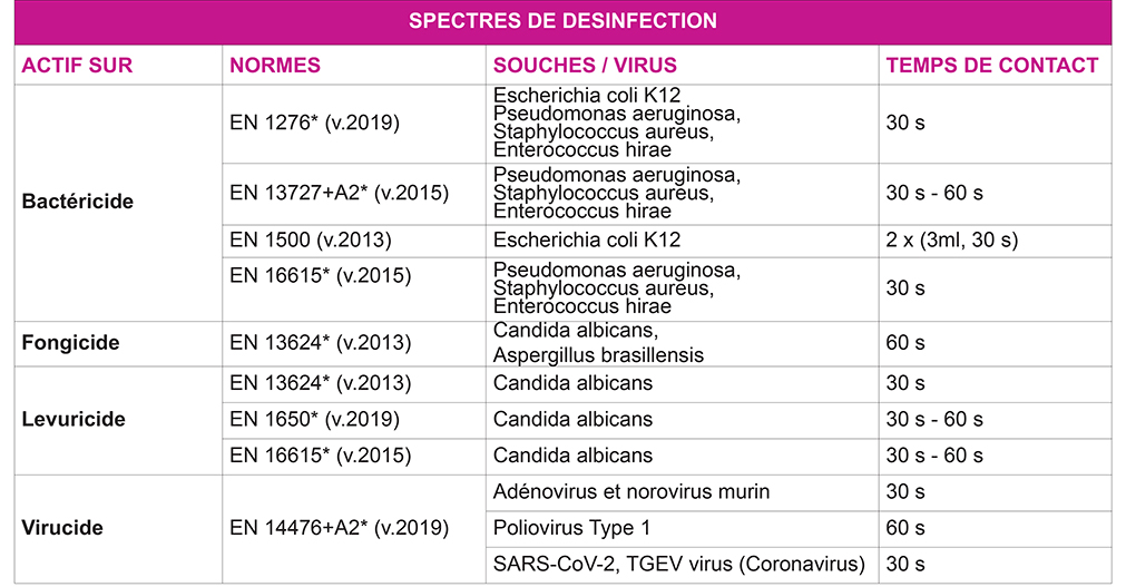 Action bactéricide, levuricide et virucide efficace et sans rinçage.